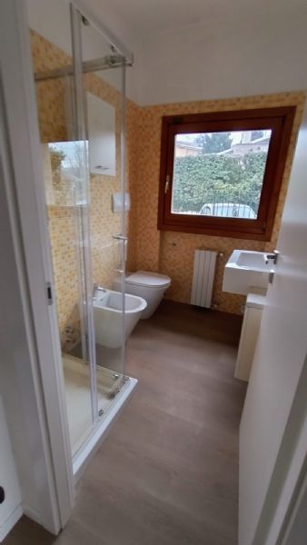 Al piano primo si trova la zona notte con un ampio disimpegno che permette di accendere ad un terrazzo di 27 mq, un bagno, 2 camere singole con balconcino e una camera matrimoniale con una cabina armadio. Al piano interrato, due ampi locali hobby/taverna con camino. Inoltre su questo piano si trova una autorimessa comune di 150 mq con basculante che da sul corsello carraio, della quale 1/3 è di proprietà. Vi sono poi un bagno, una lavanderia e altri locali accessori.